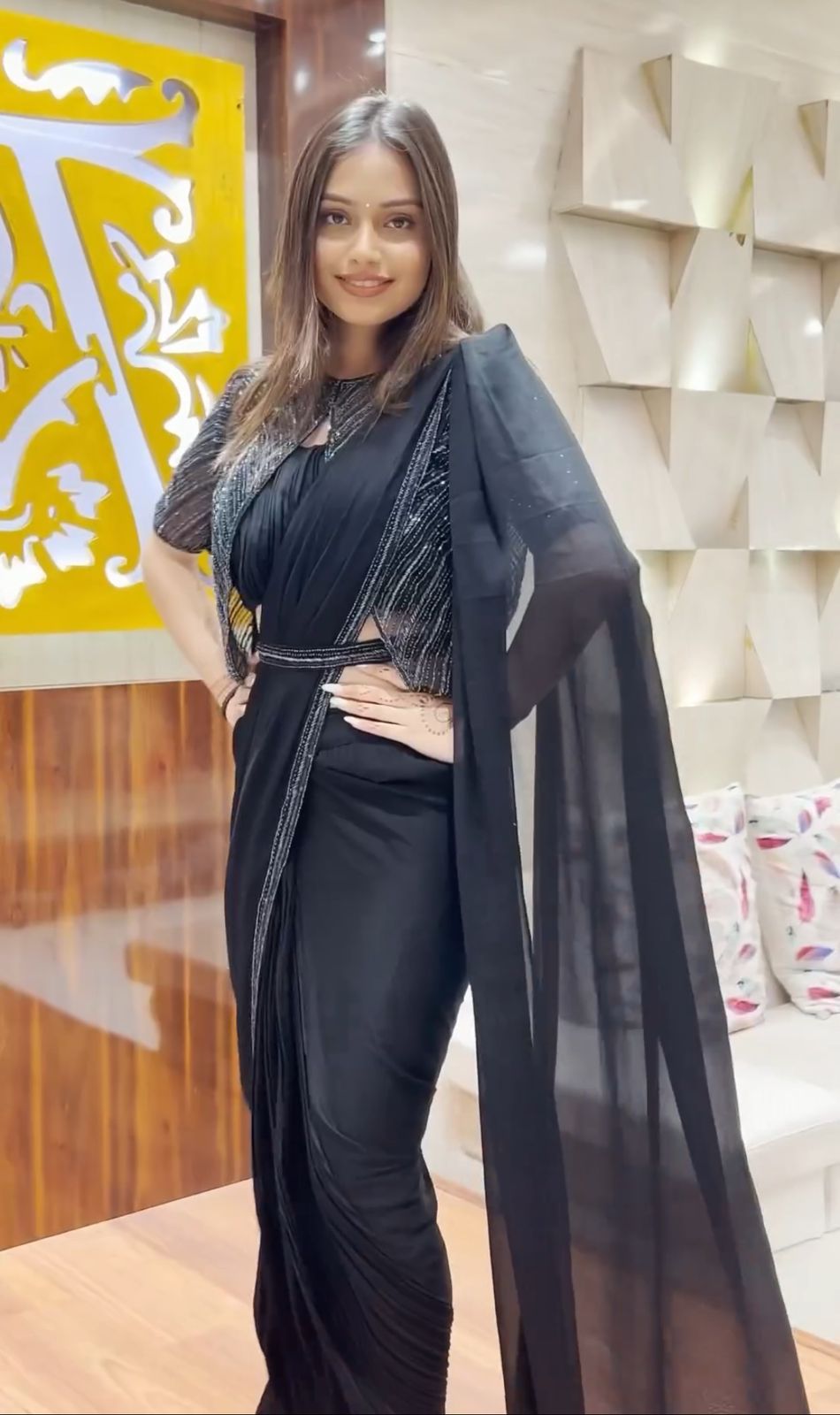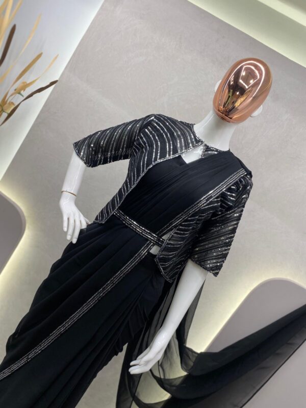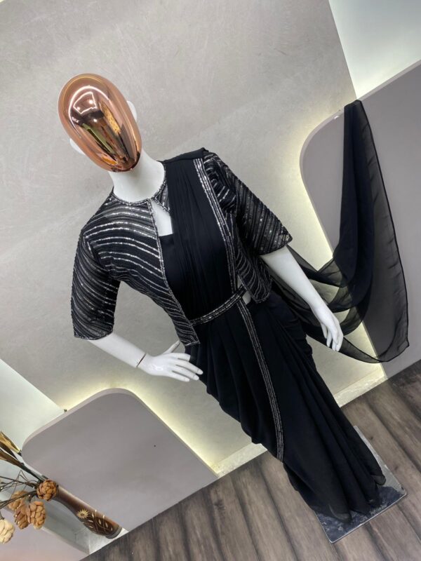 TRENDING NEW FANCY READY TO WEAR FAUX GEORGETTE SEQUENCE WORK SAREE WITH COAT AND FULL STITCHED BLOUSE 🚀_