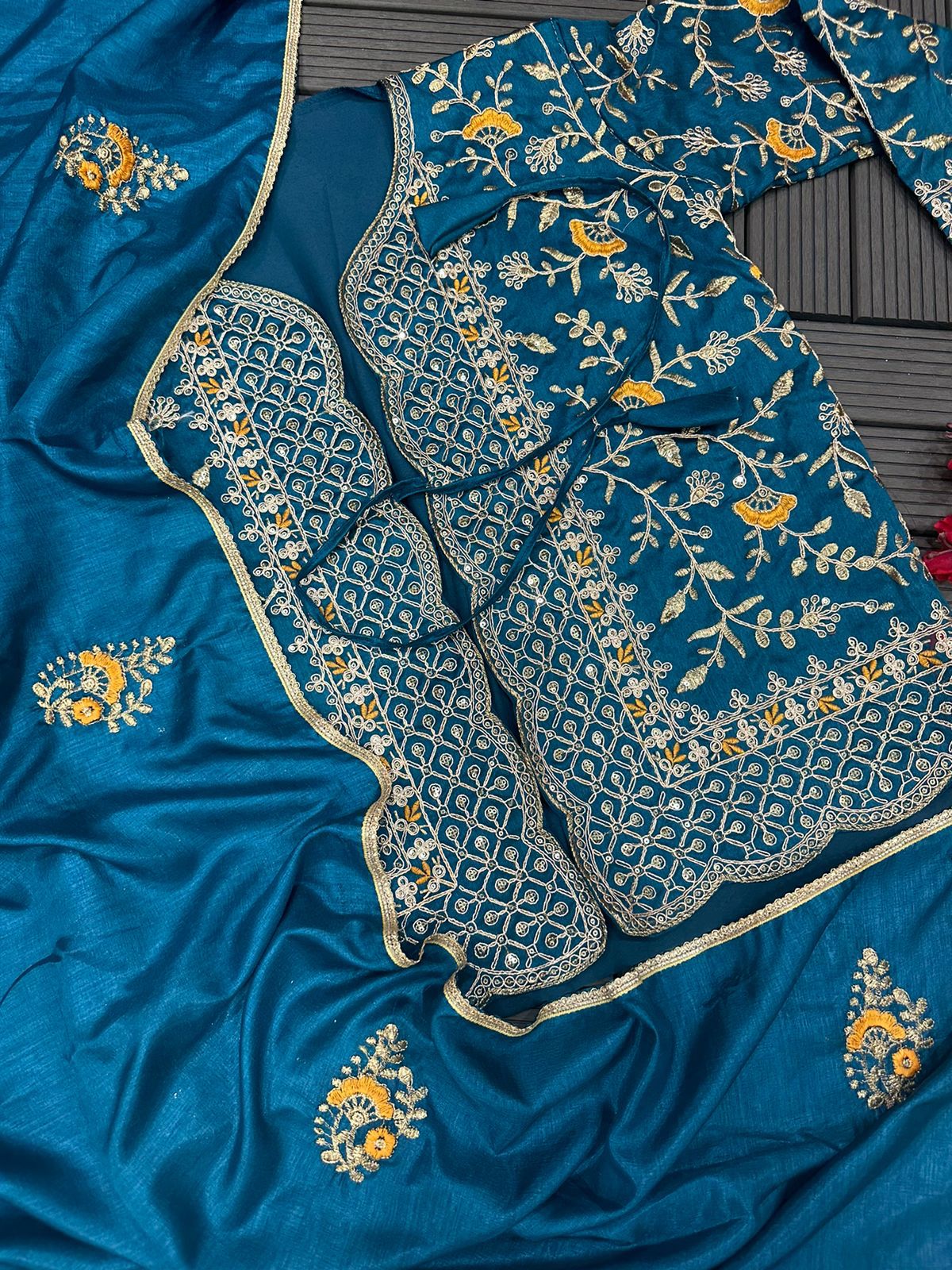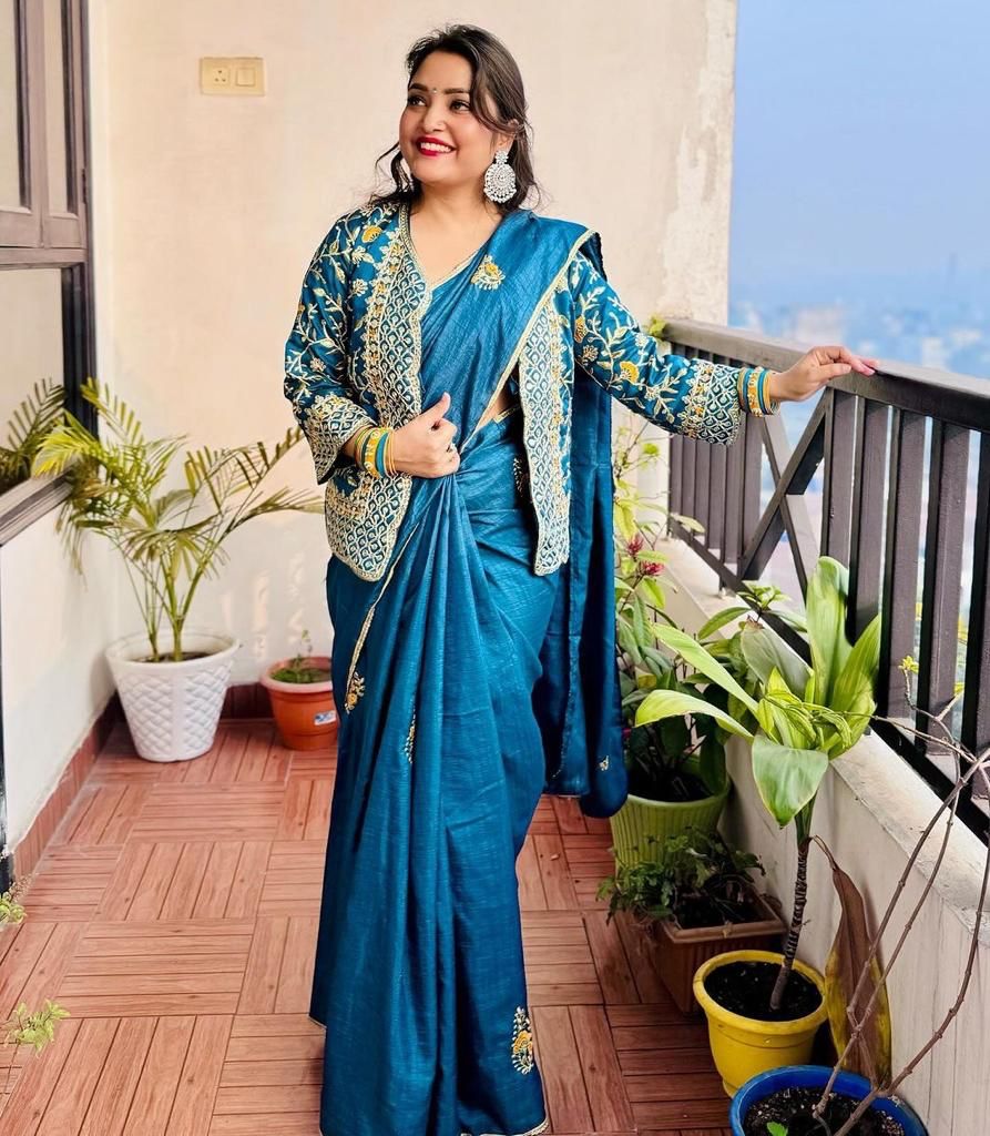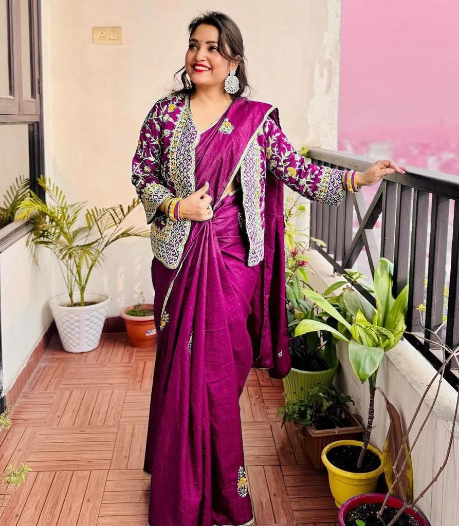 New Super Trending Embroidery cording work ready to wear saree with full Coat