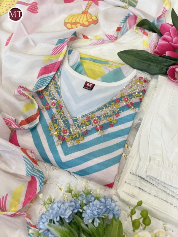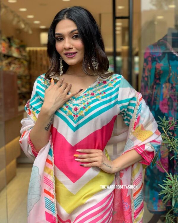 It is paired with Round Gown matching pants and chiffon dye dupatta For all the stylish ladies out there, who want something simple, sophisticated and traditional.