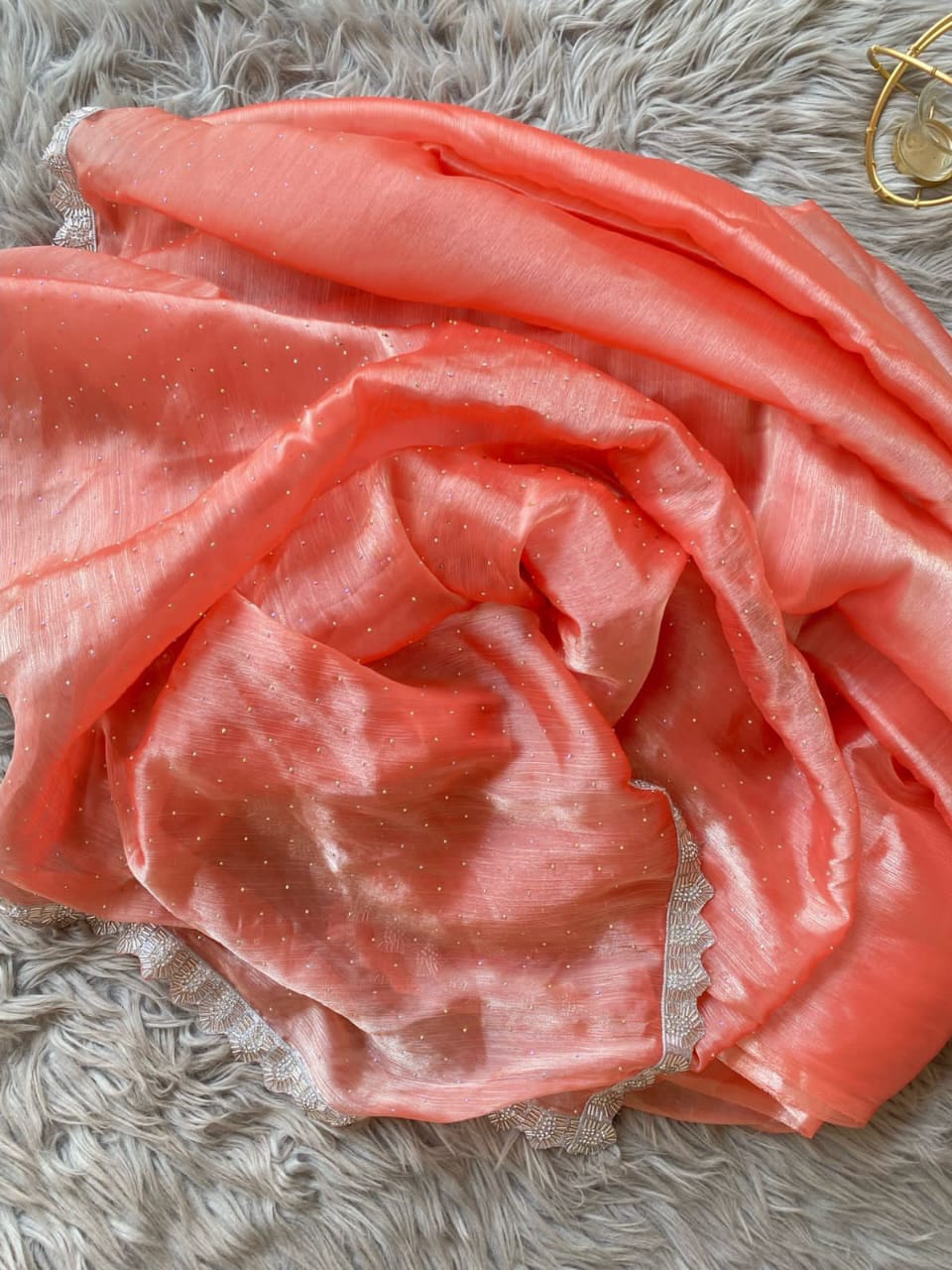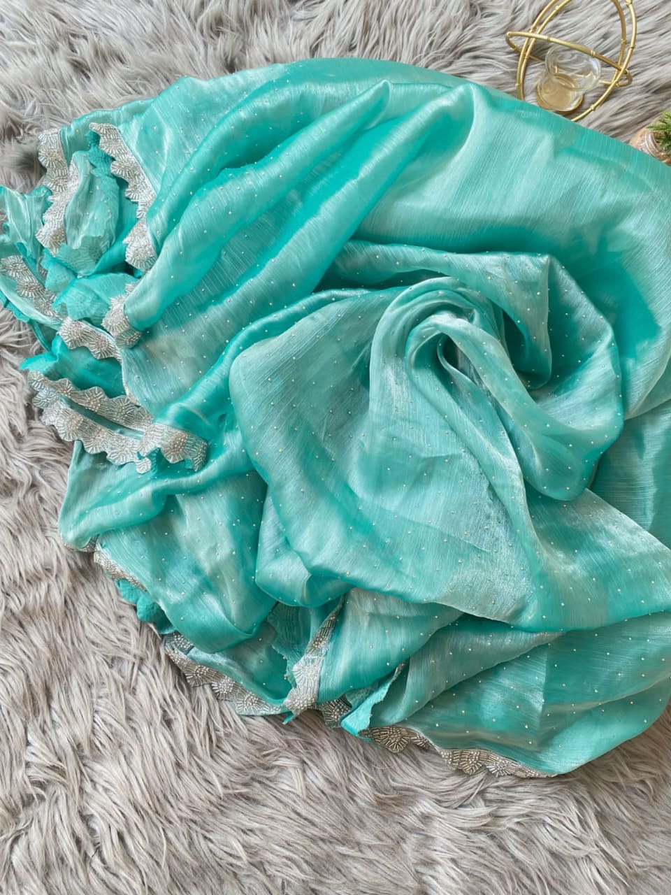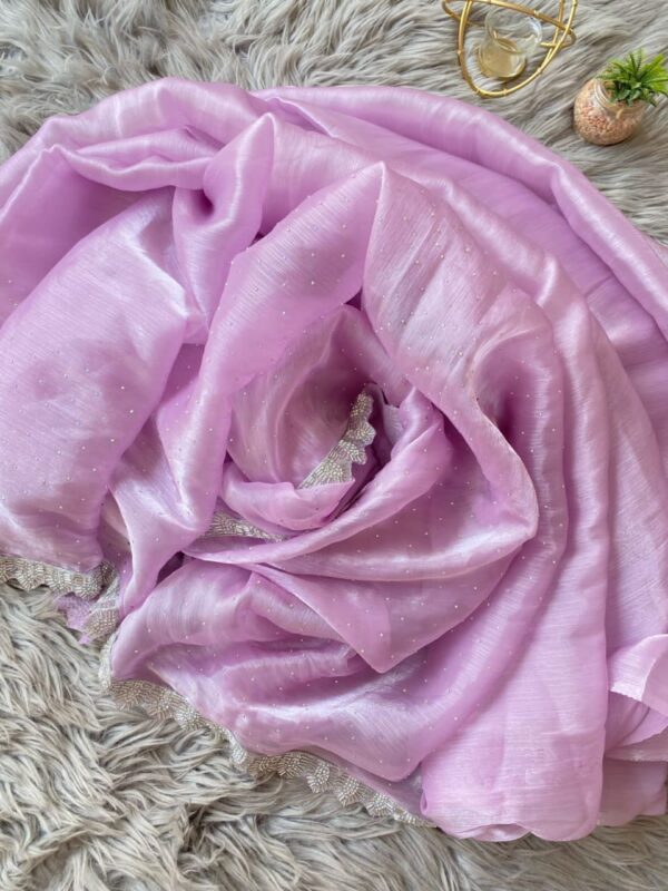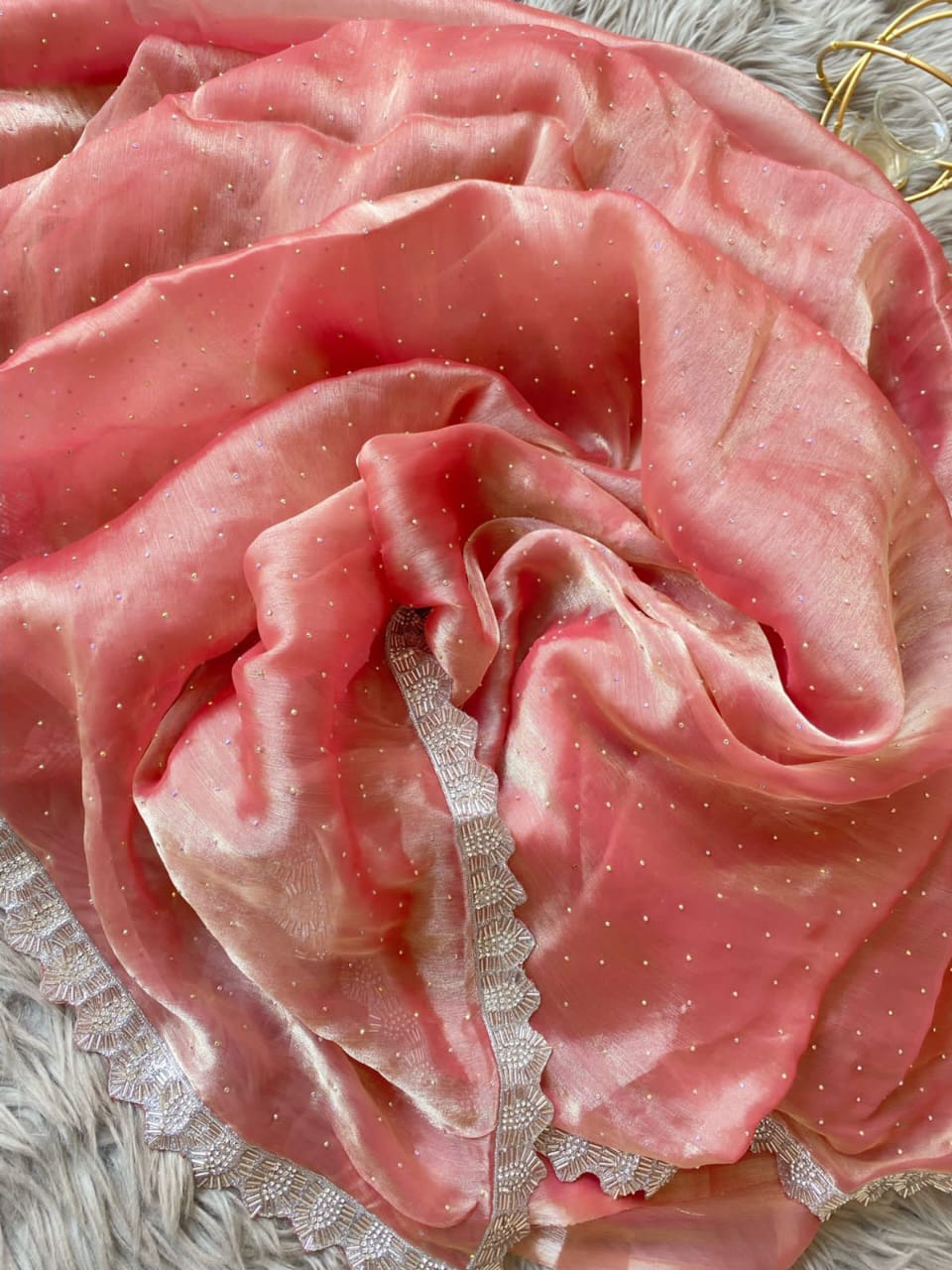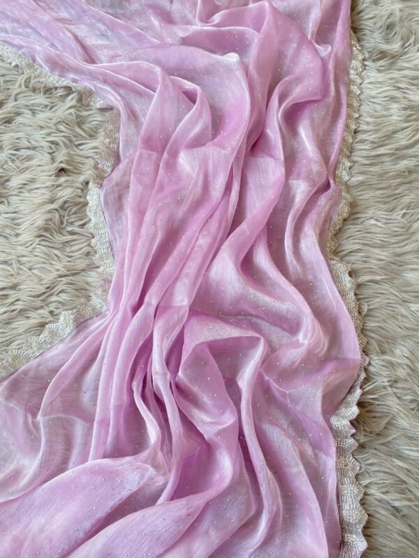 Premium Barbari Jimmy Chu Silk With Pure JARKAN Handcraft Lace Border And Diamond in Saree
