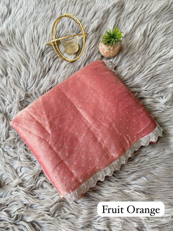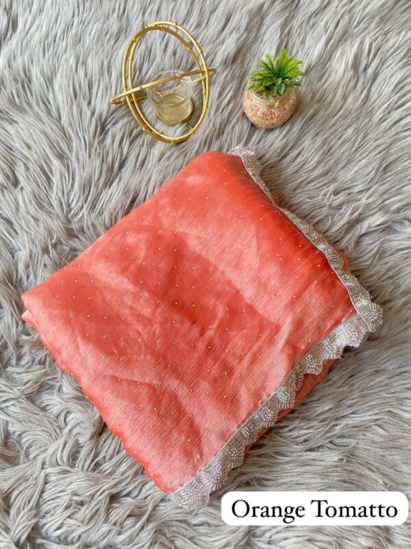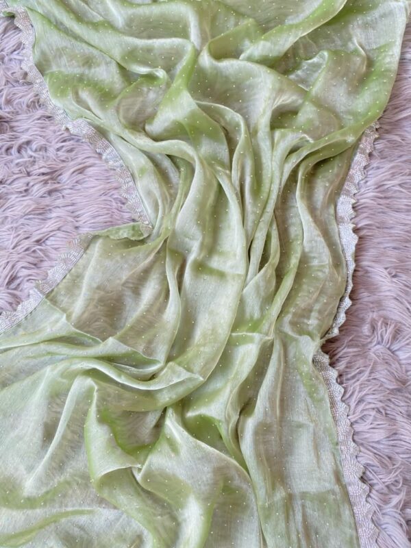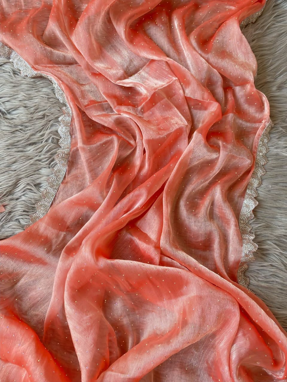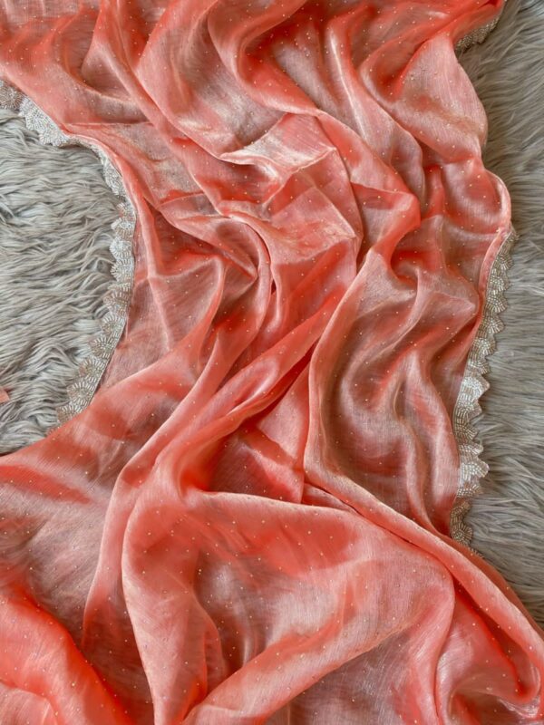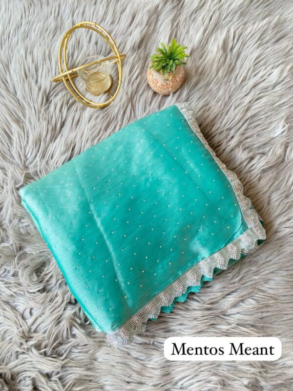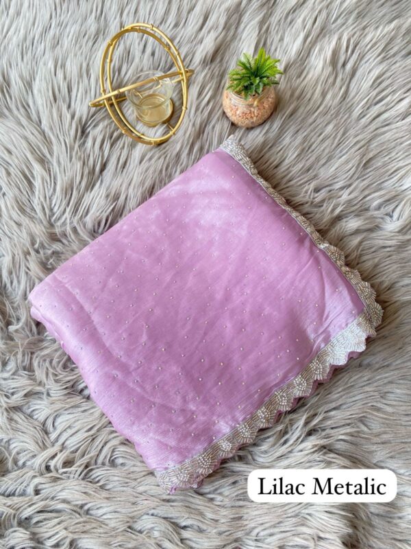 Premium Barbari Jimmy Chu Silk With Pure JARKAN Handcraft Lace Border And Diamond in Saree