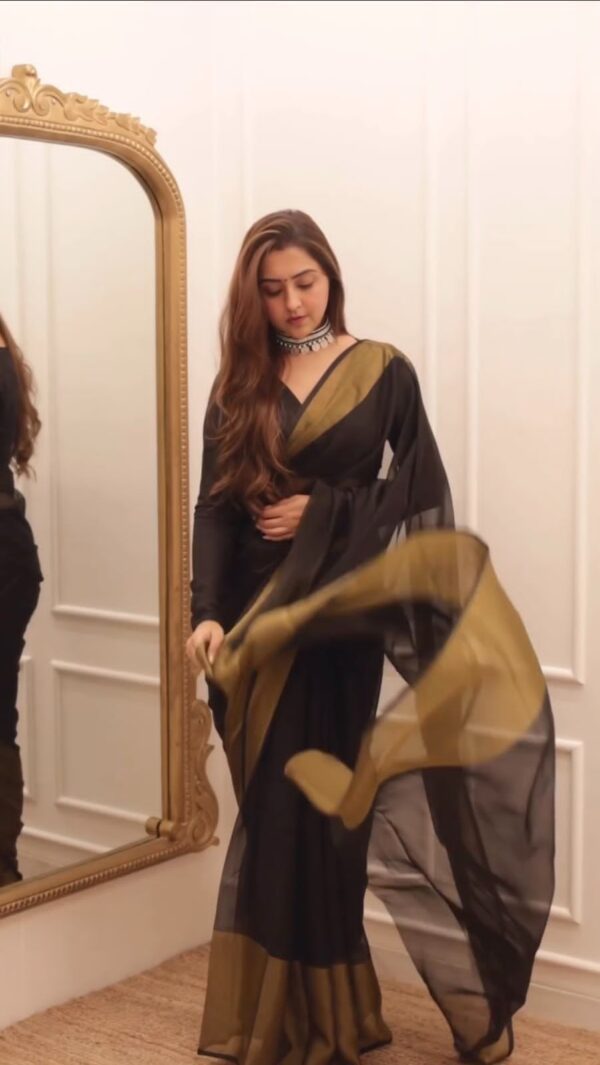 2️⃣ Work:- Golden zari patta border and Ready to wear.