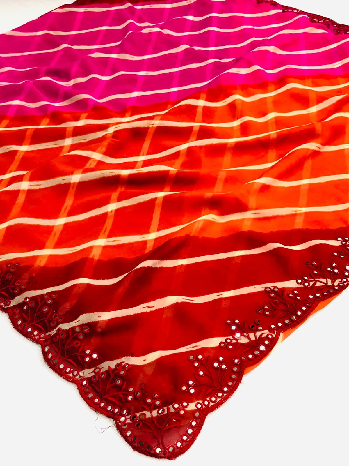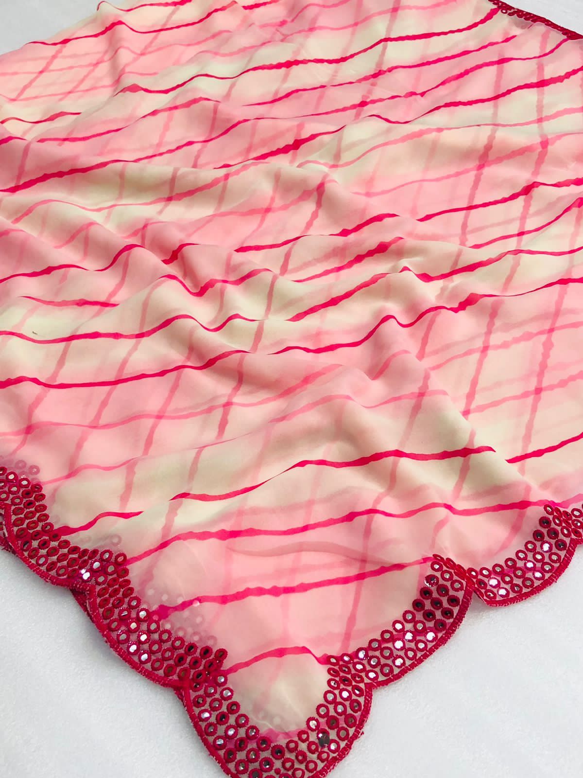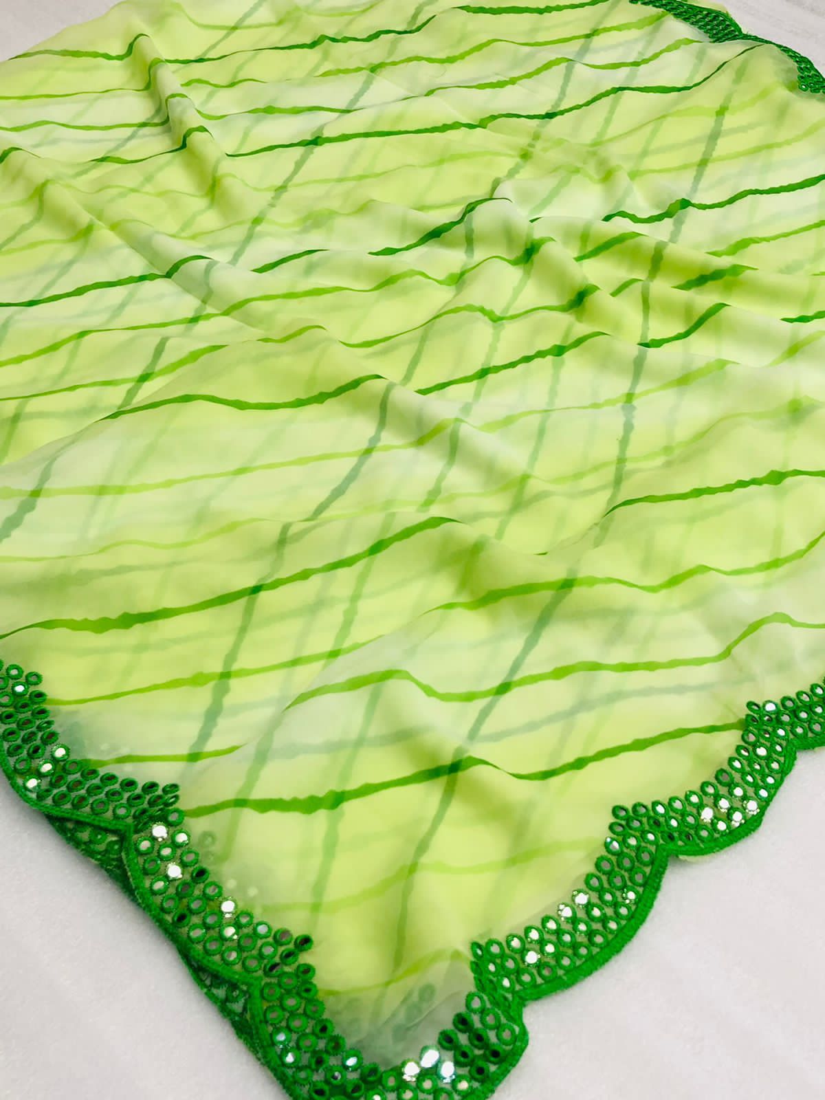 Pure and very soft Lite weight Georgette sarees with all over LEHERIYA print and allover foil mirrors penal work.