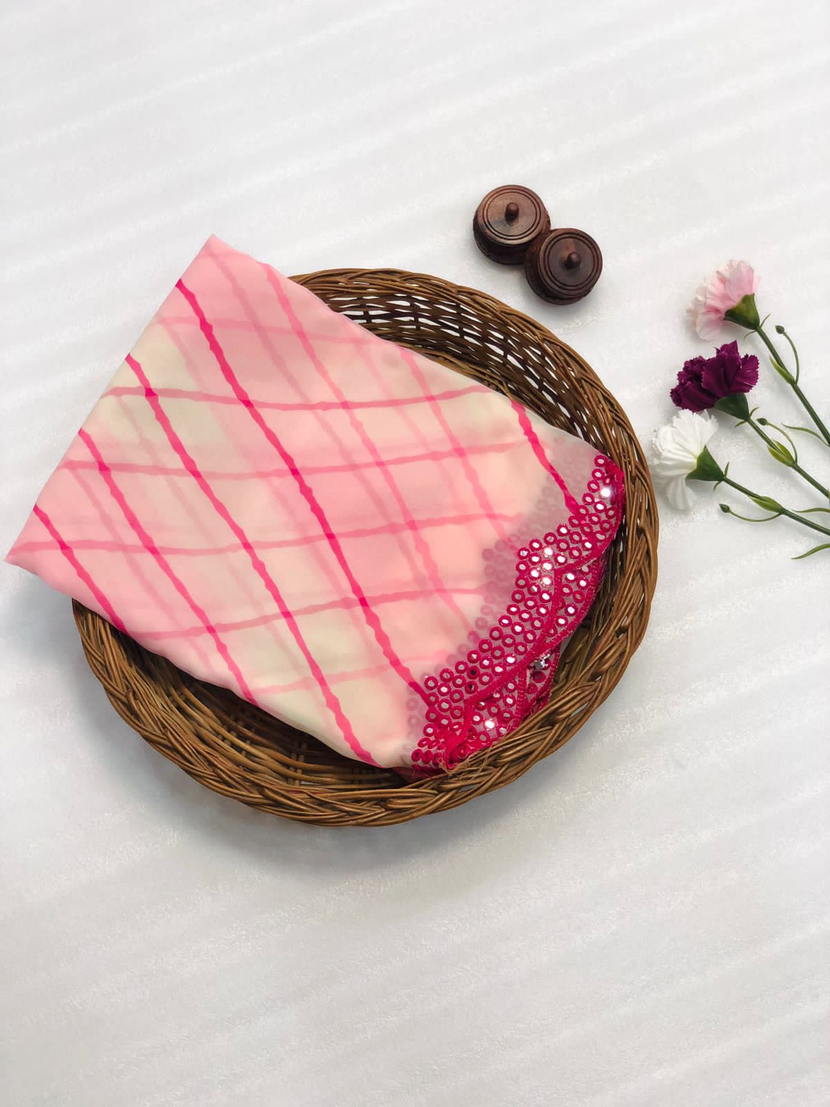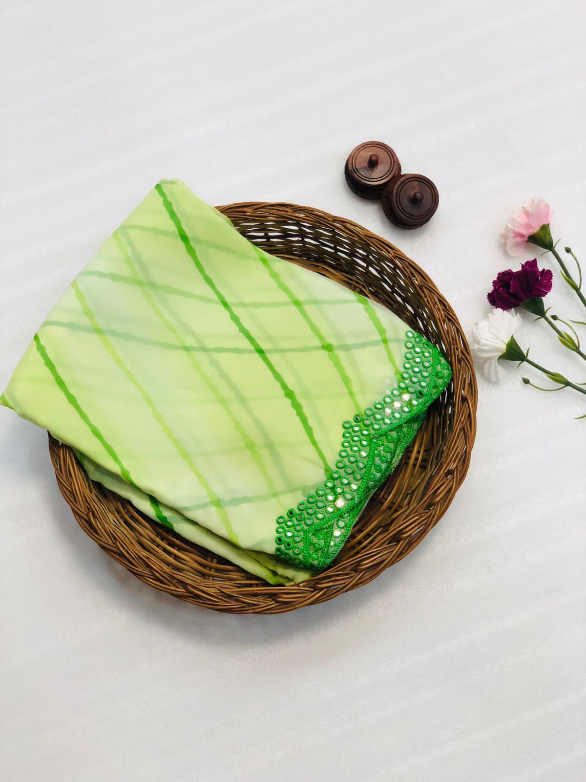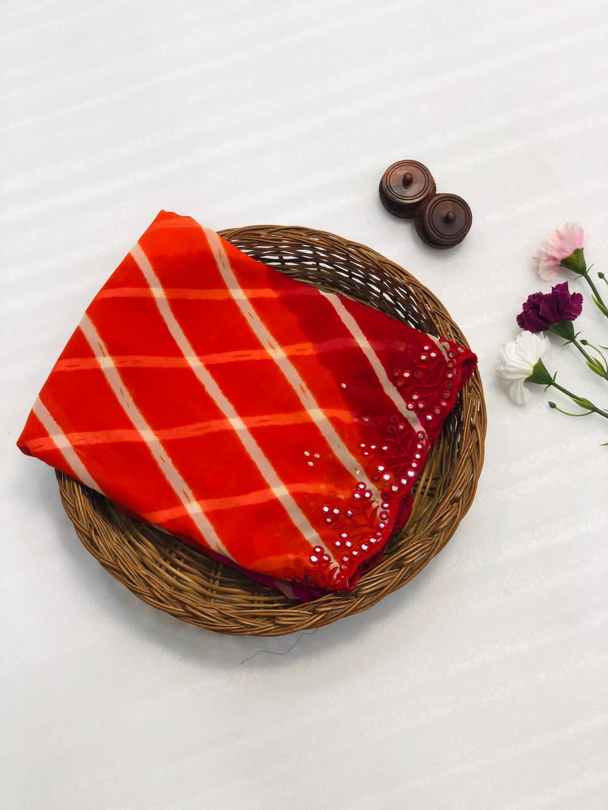 Pure and very soft Lite weight Georgette sarees with all over LEHERIYA print and allover foil mirrors penal work.