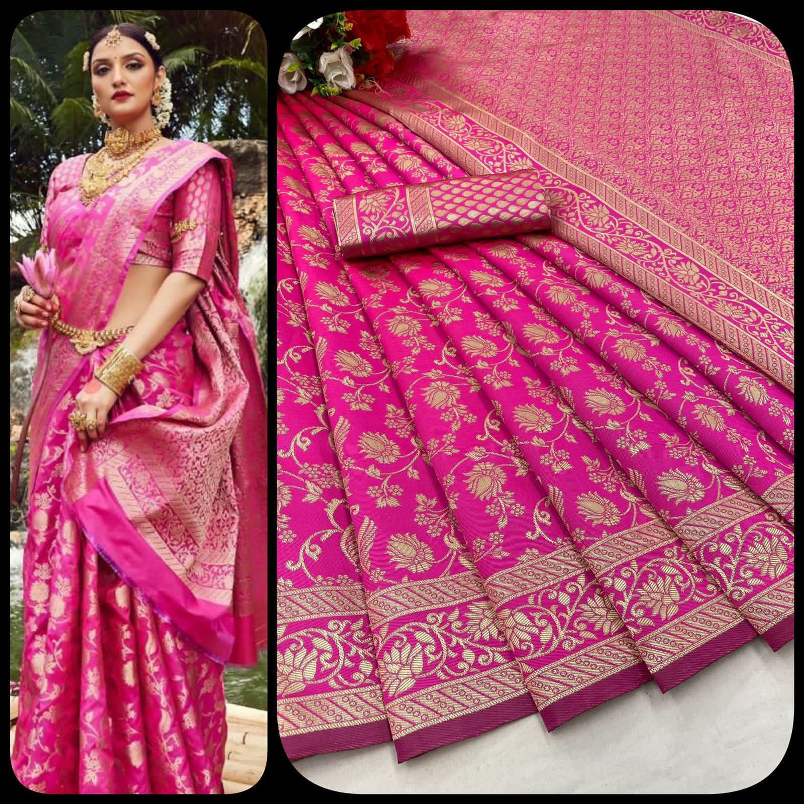 DESIGN : BEAUTIFUL RICH PALLU & JACQUARD PATTERN WORK ON ALL OVER THE SAREE.