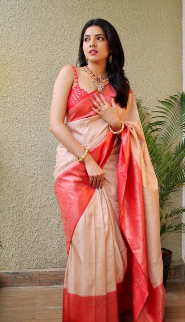 👉🏻Work:-Jacquard Weaving Work With Gold Weaving All Over Saree