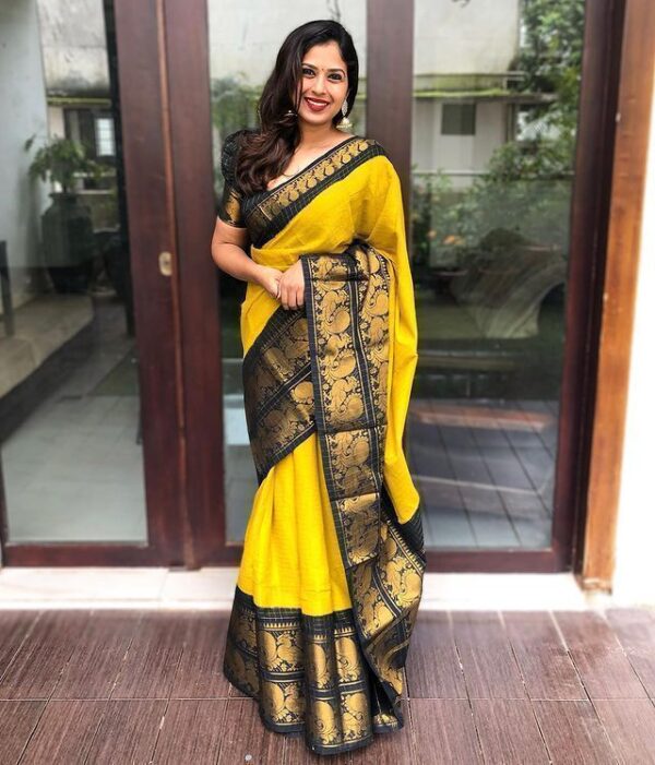 👉🏻Work:-Jacquard Weaving Work With Gold Weaving All Over Saree