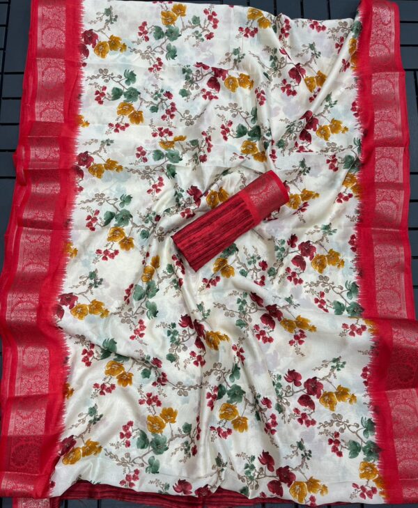 BLOUSE – SOFT TUSSAR SILK SLUB ( running contrast blouse )