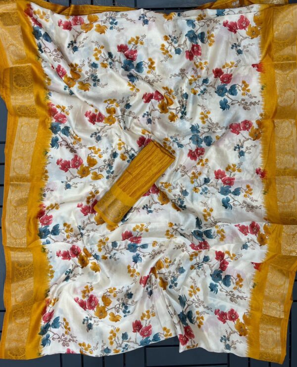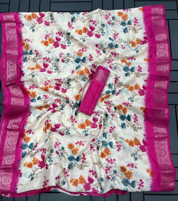 SAREE – SOFT TUSSAR SILK ( golden zari weaving zig zag border)