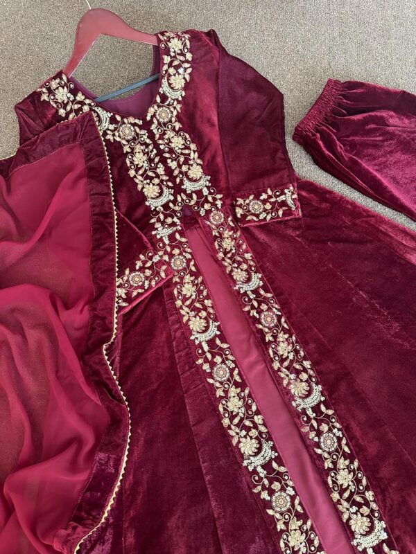 π Gown Fabric : Heavy Viscose Velvet With Sleeve And Work