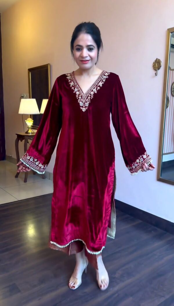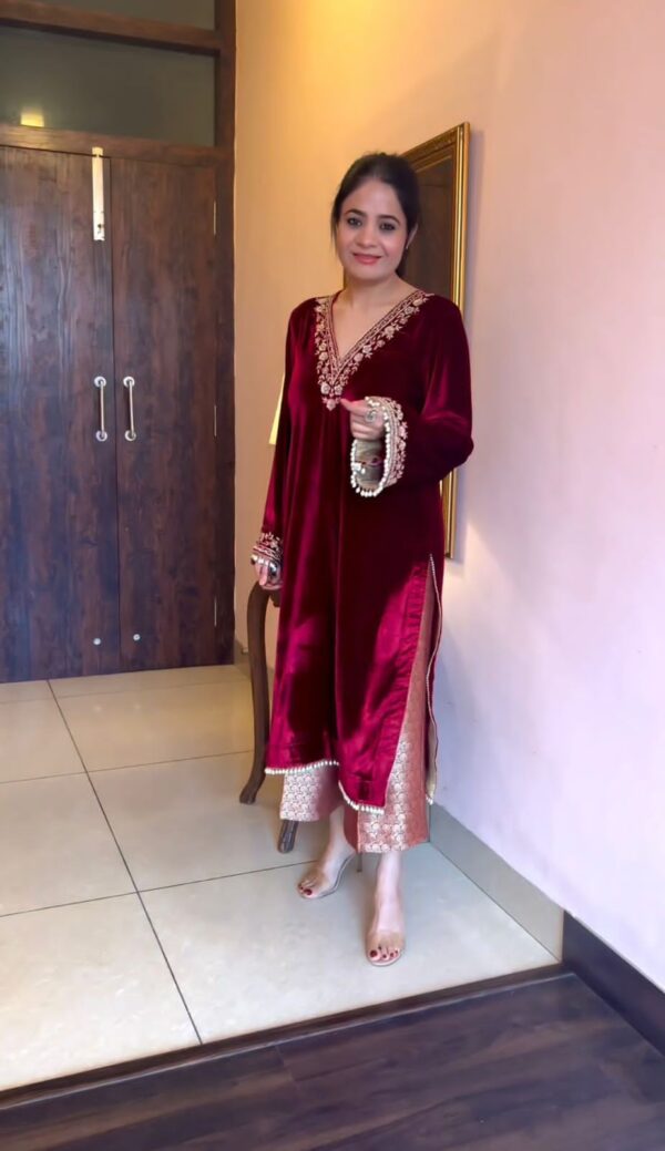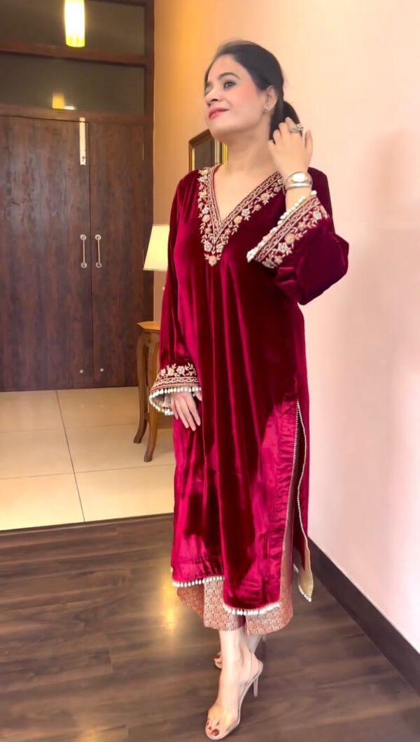 # Top Fabric : Heavy Viscose Velvet And Sleeve With Work