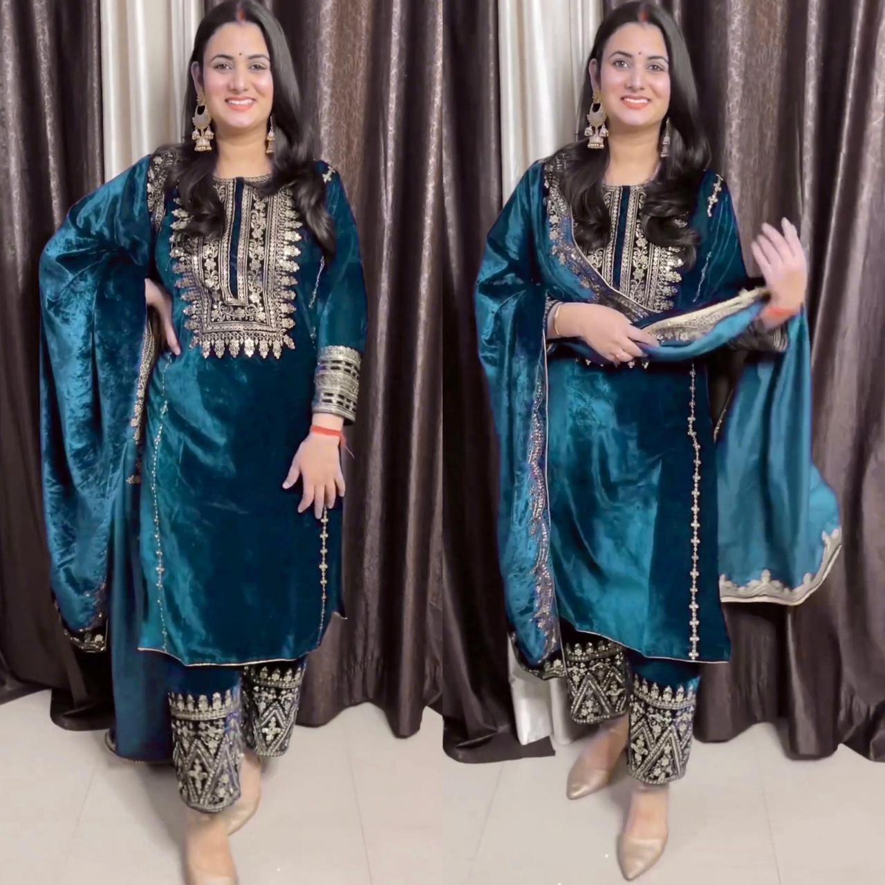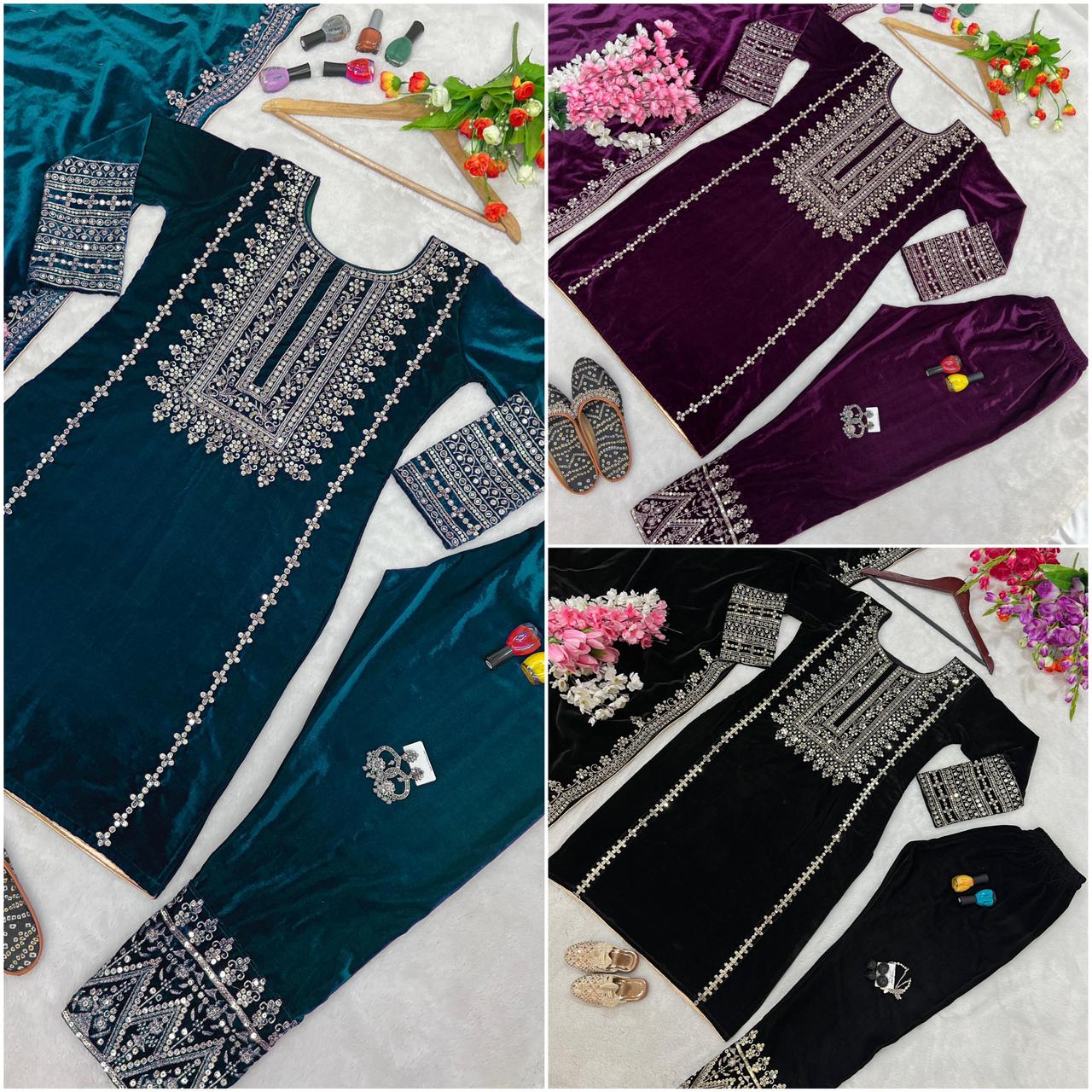 ๐ Top Fabric :Heavy Viscose Velvet With Heavy Embroidery Sequence Work With Full Sleeves๐