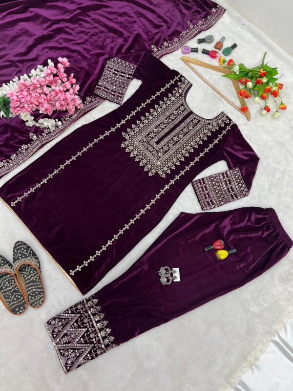 ๐ Dupatta Fabric : Viscose Velvet with Embroidery Sequence Work lace border