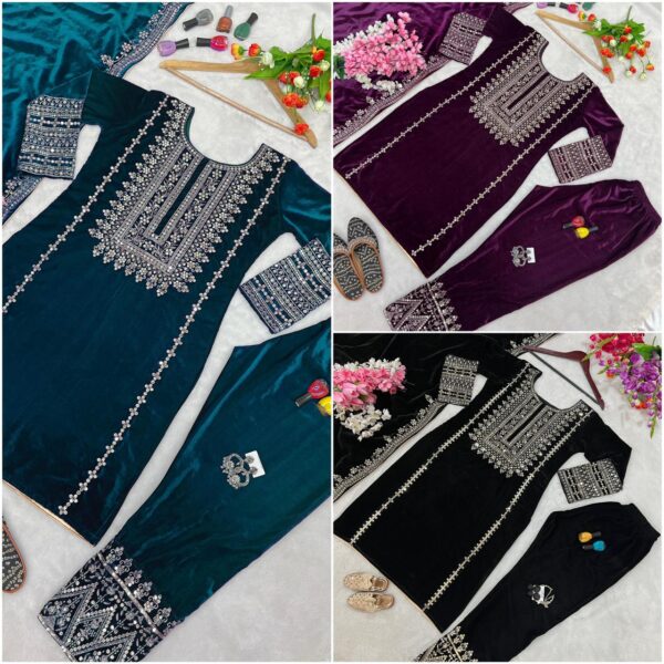 ๐ Bottom Fabric : Viscose Velvet with Embroidery Sequence Work ( Full Stitched)