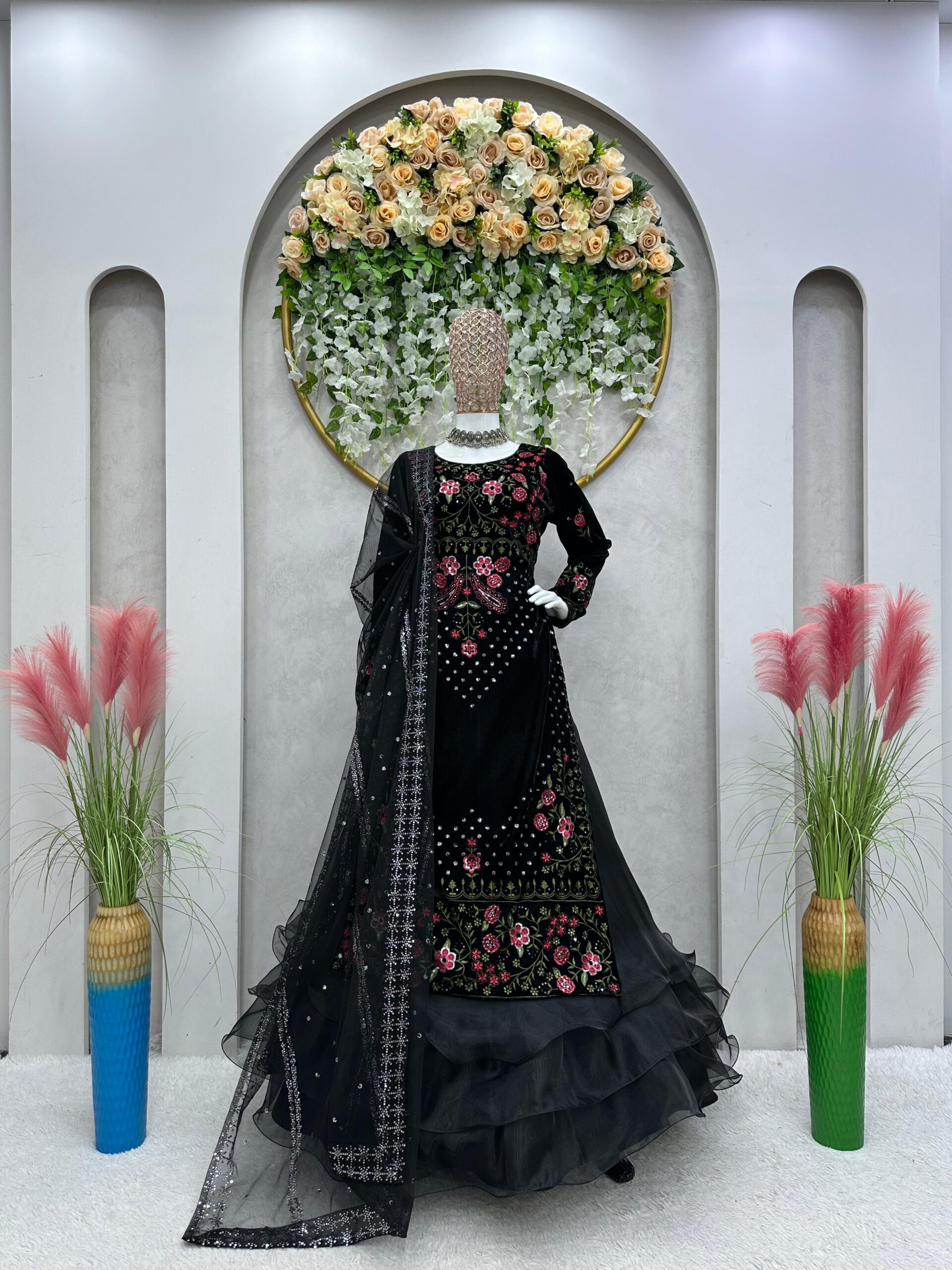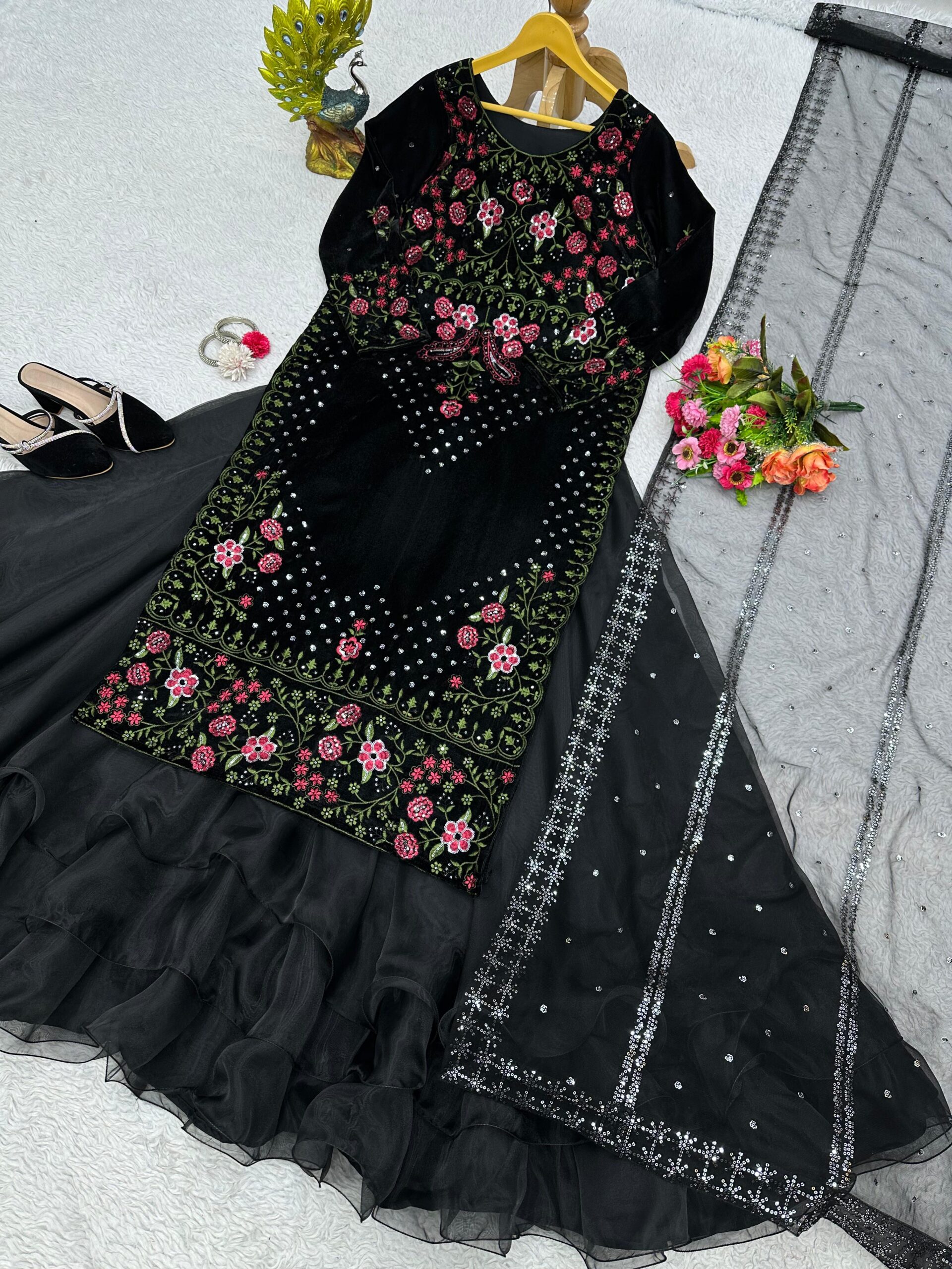 Fabric : Viscose Velvet Work. : Thread with 3mm Sequence Size : M(38), L(40),XL(42) * *length : Upto 52
