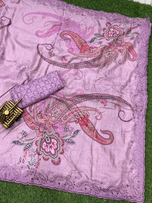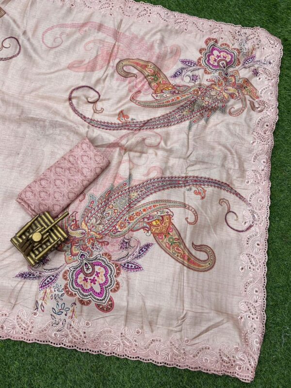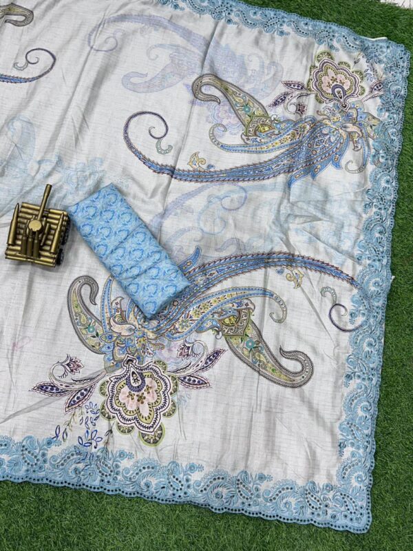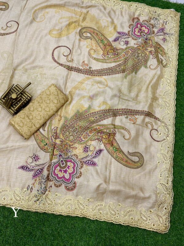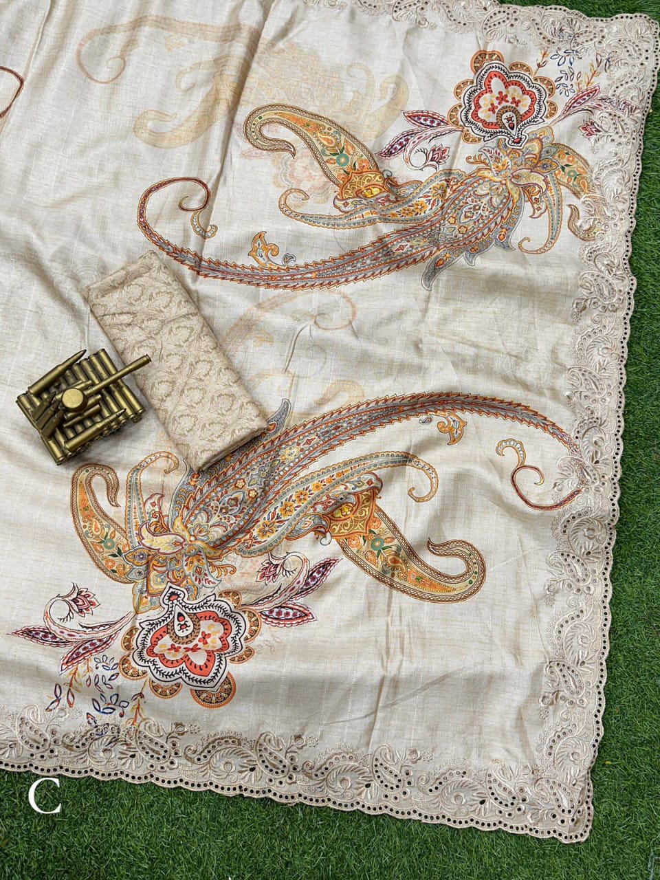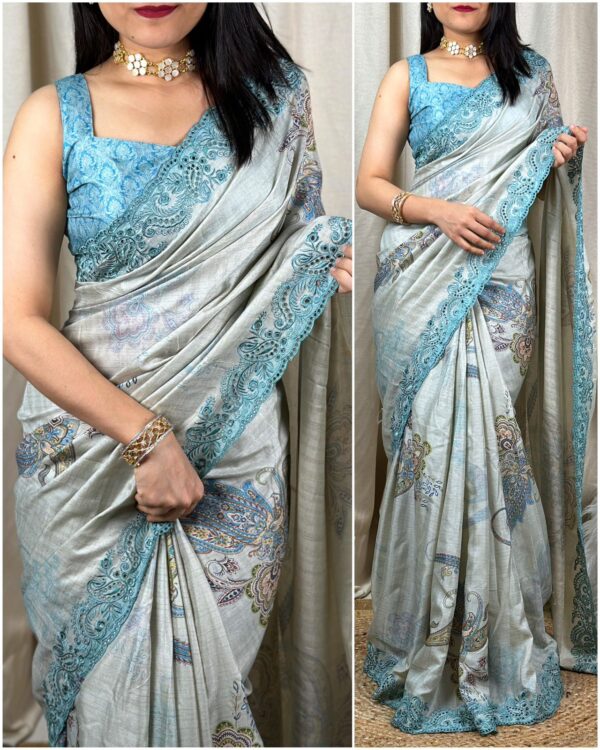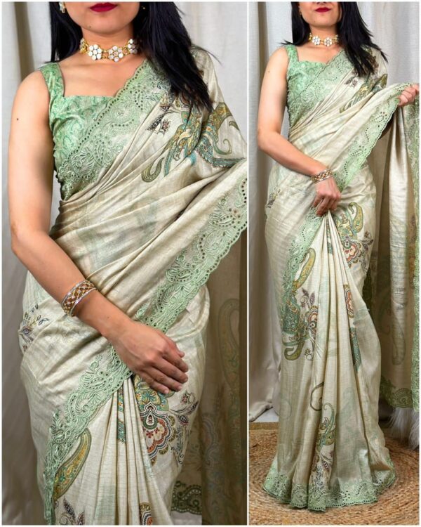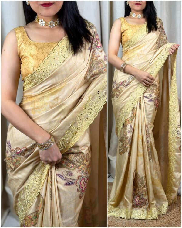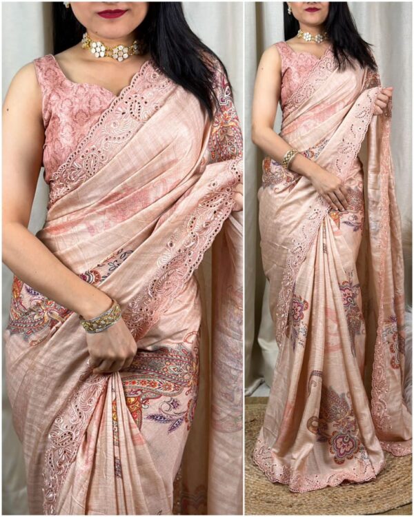 Embrace your femininity & make a statement with our stunning cut work visca slub silk saree.