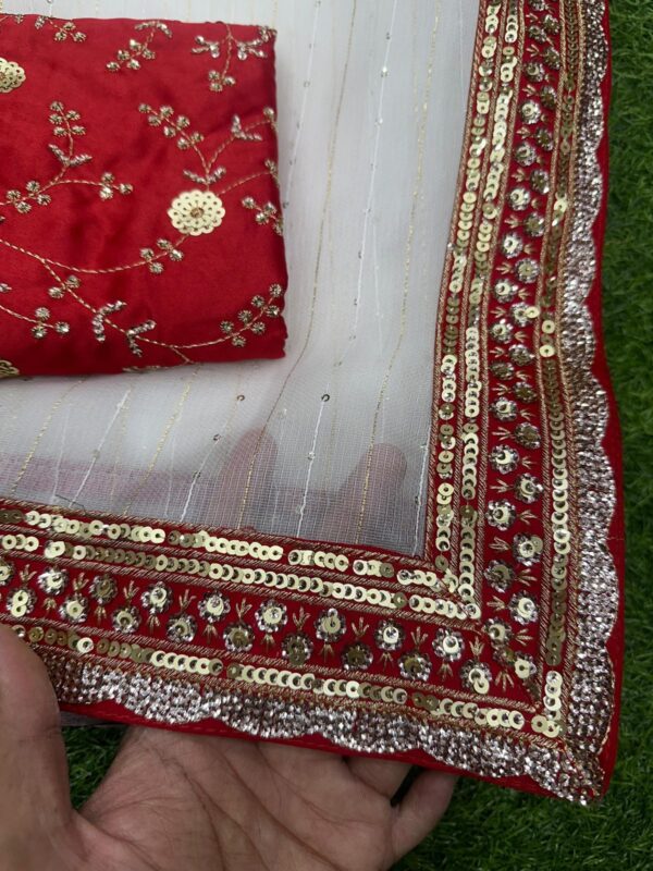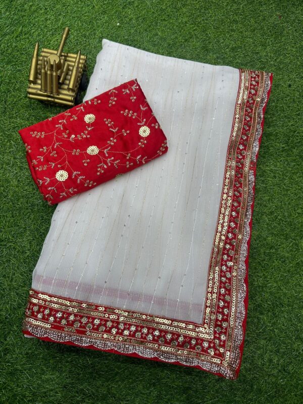 SAREE- self sequence weaving saree with contrast red color sequin work border